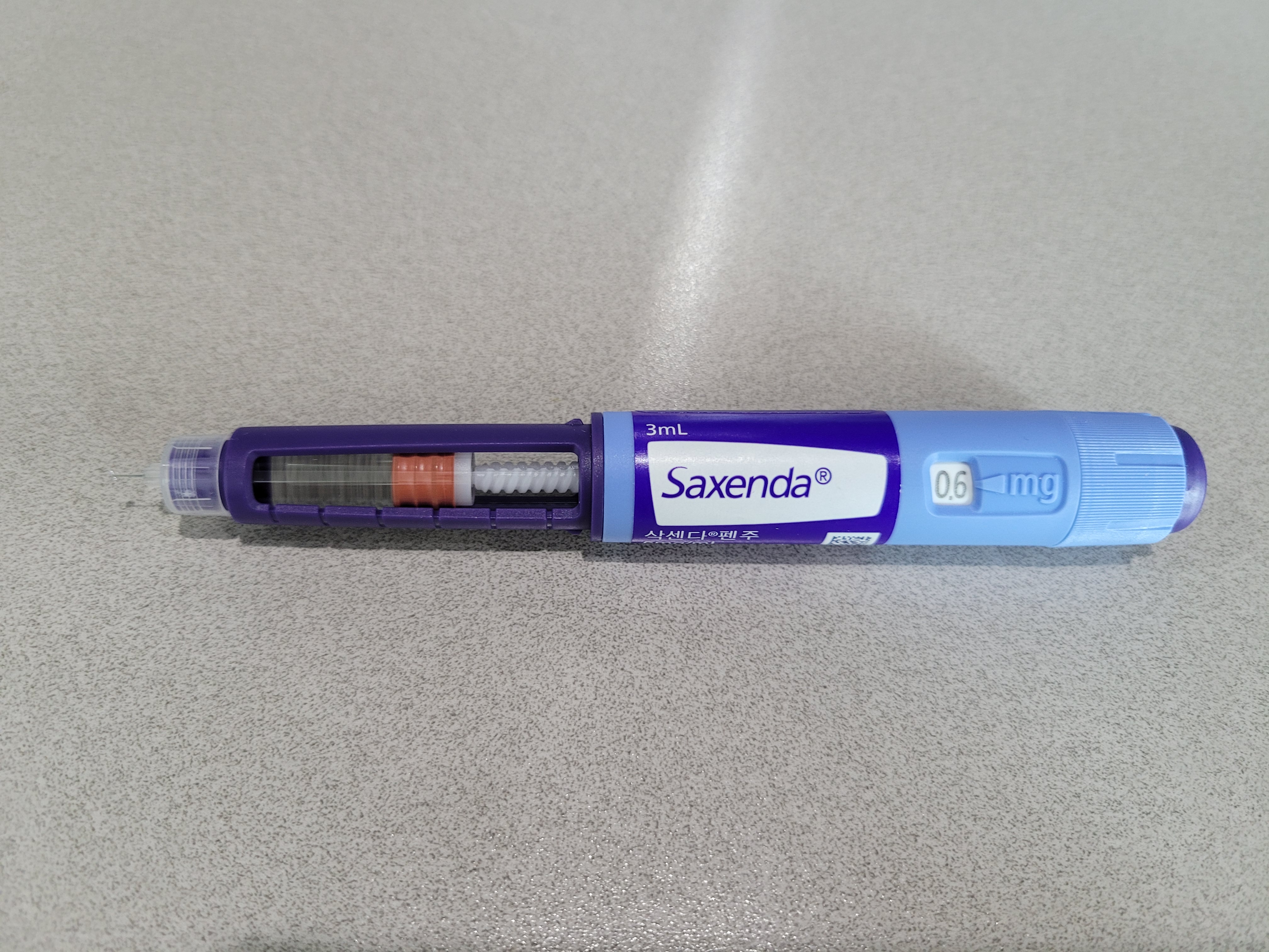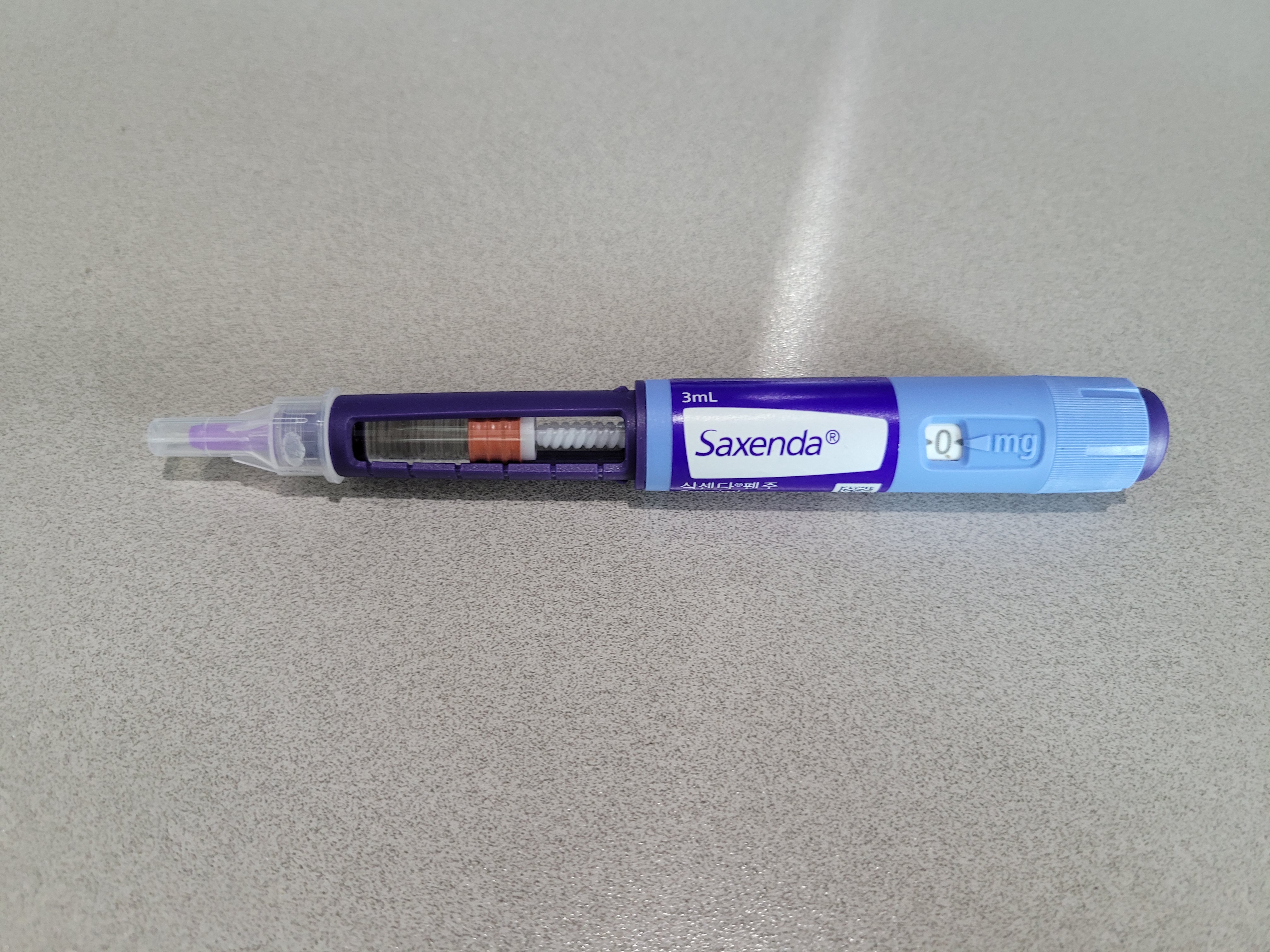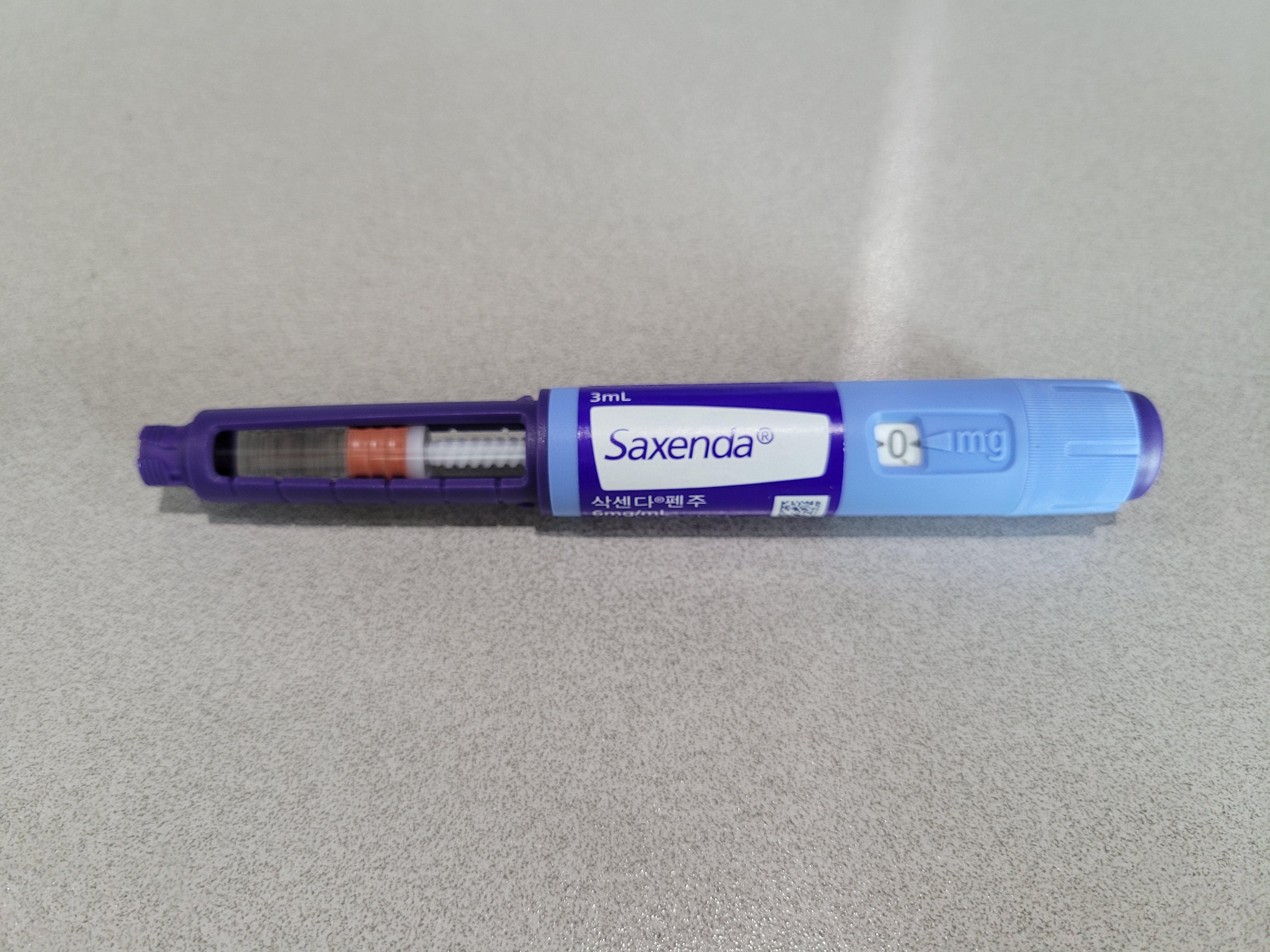 삭센다 주사를 위해 소독폼, 바늘, 삭센다 주사 3개를 가지고 다닙니다.