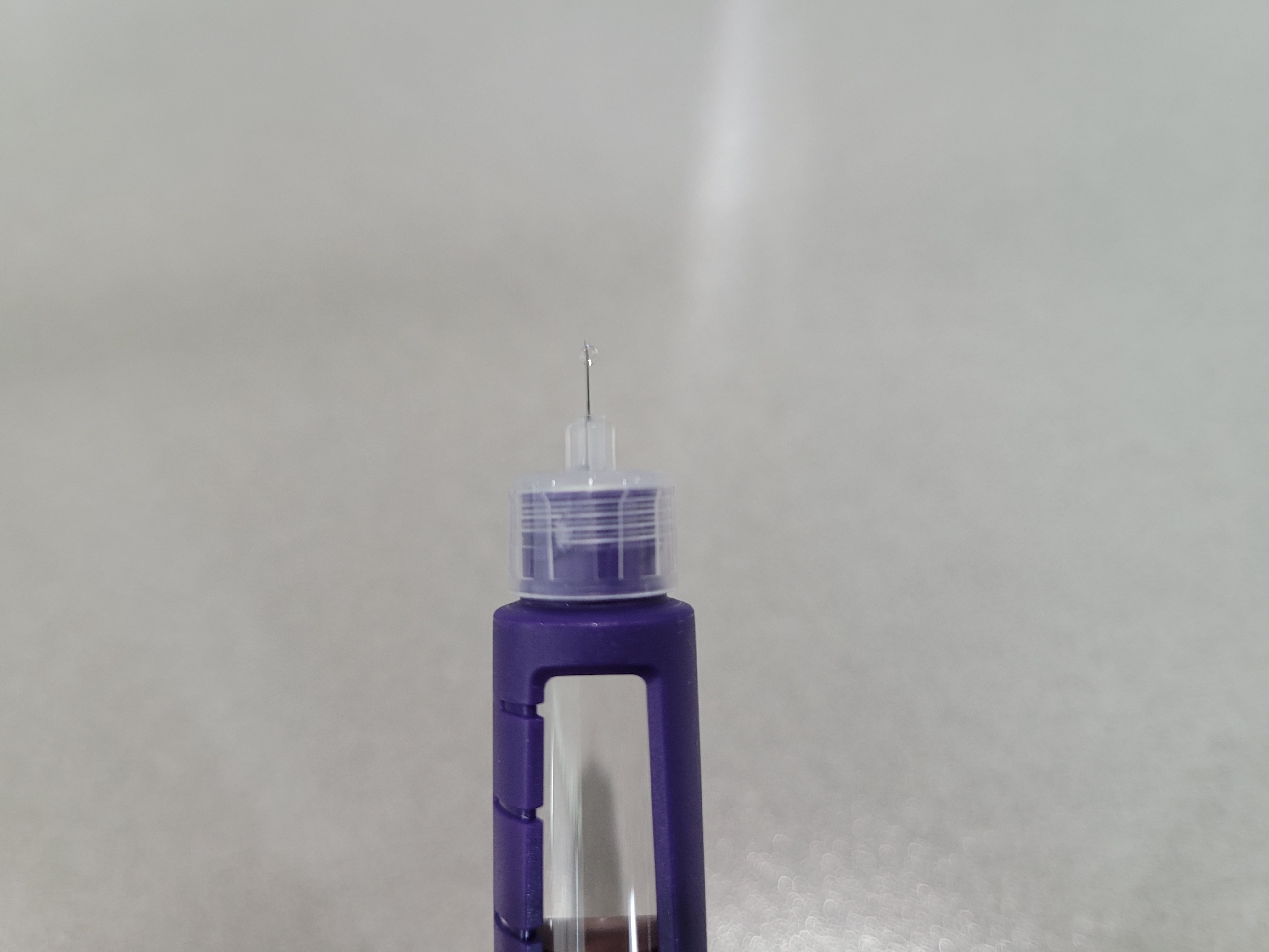 주사약을 돌리면 아래와 같이 약이 맺힙니다.