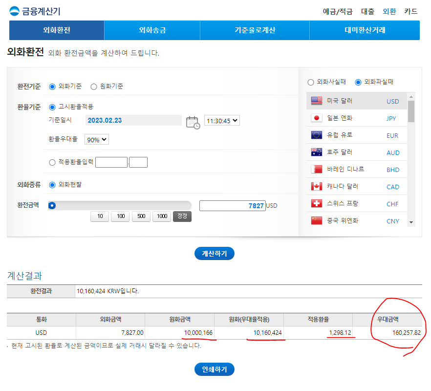 금융계산기>외화환전 - 우리은행