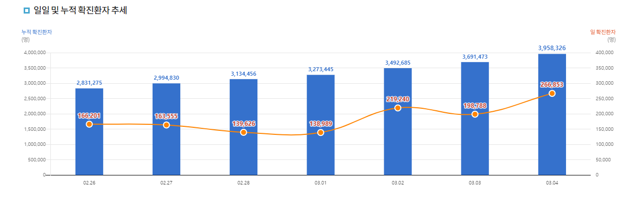 확진자 증가 추세를 고려 했을때 2달이면 50% 감염율 달성