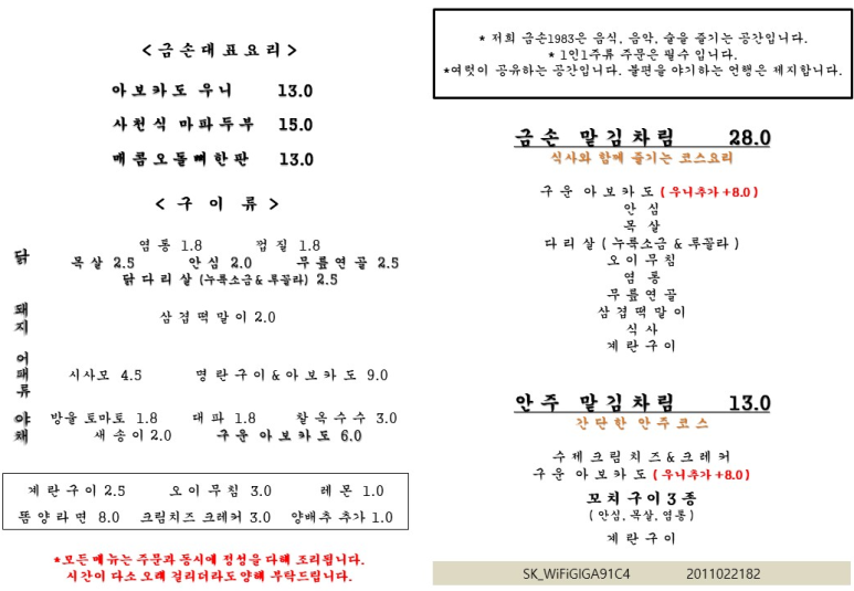 안주 맡김차림 메뉴 입니다.!!